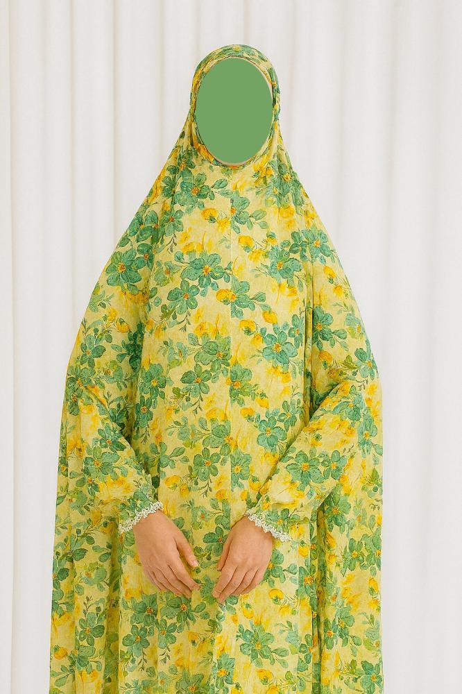 الموديل بنخق واسع وطويل بكم مع مطاط للرأس