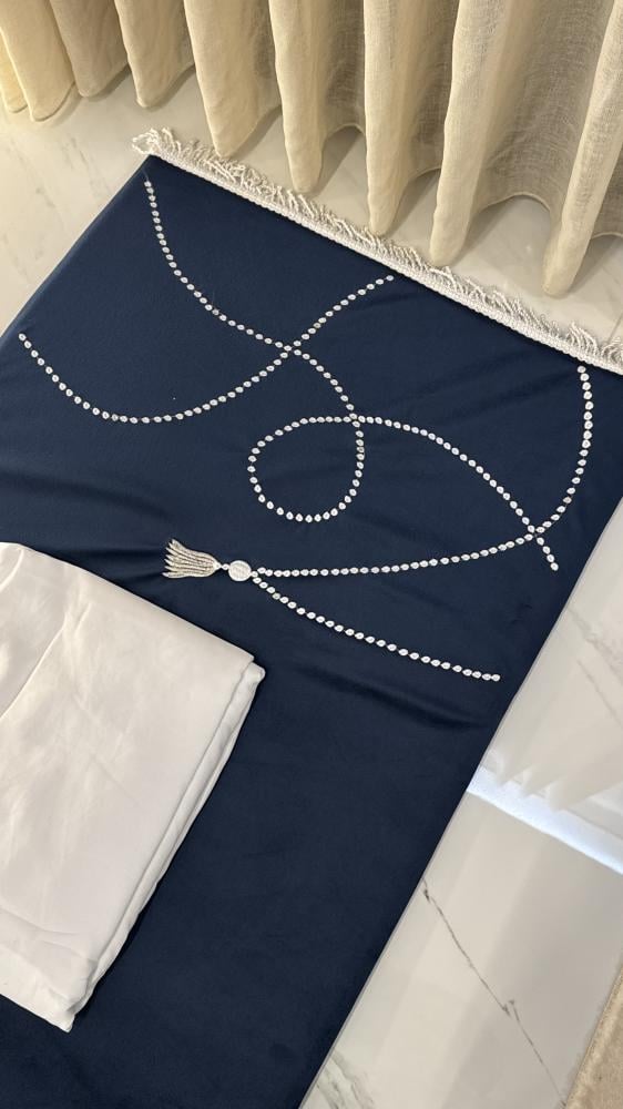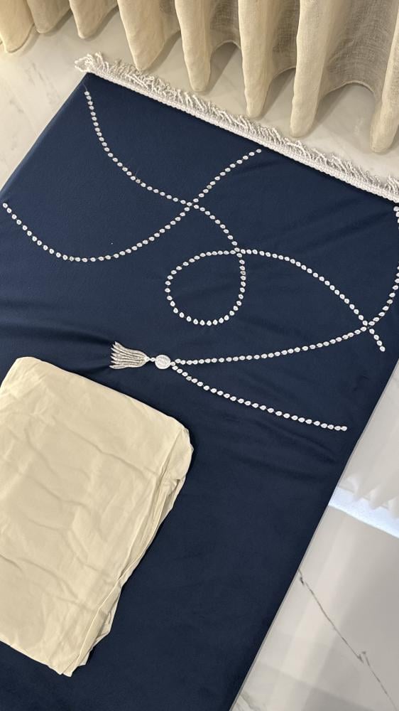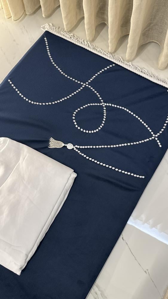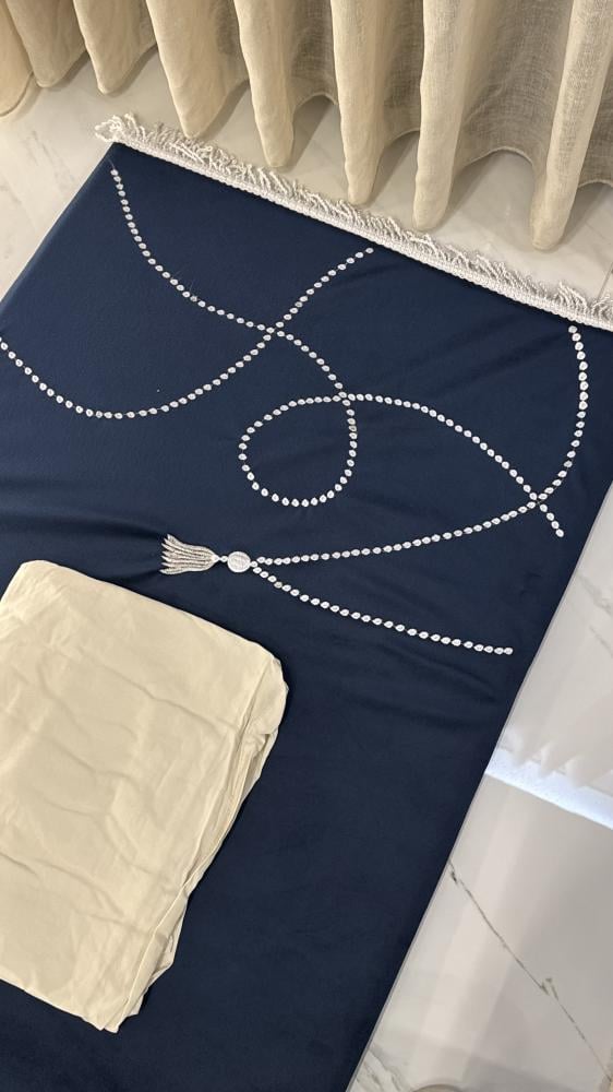 إذا تحبي طقم الصلاة قطعتين يريحك ويناسب ذوقك، طقم المسبحة الكحلي هو اللي يدور عليه بالك. لونه هادي وراقي، والسجادة مريحة ومرنة تخليك تصلي بدون ما تحس بتعب، والجلال شكله مرتب وكله نعومة.